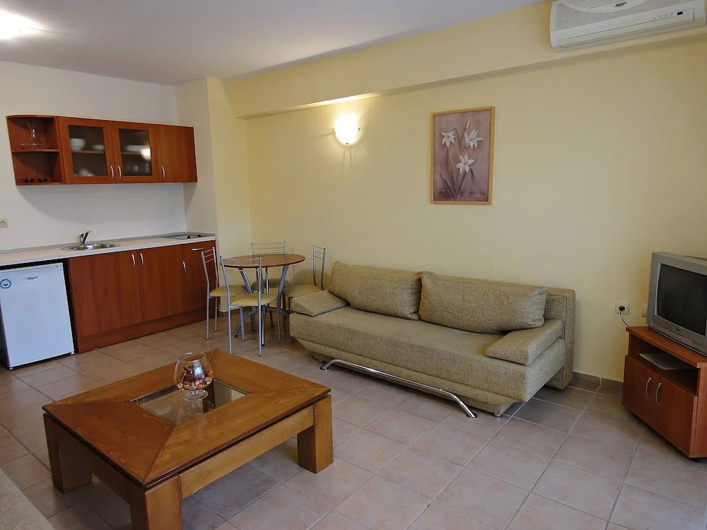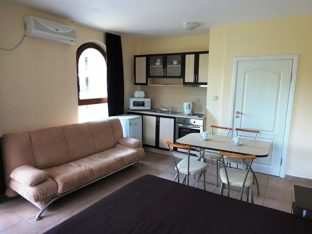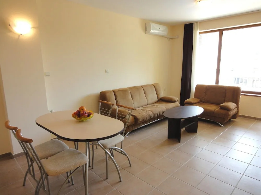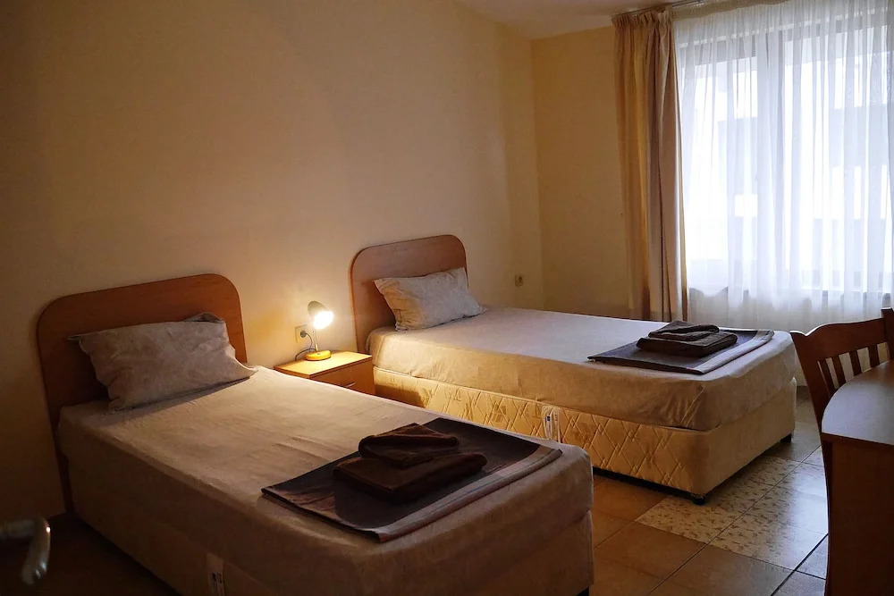 Номер был хорошего размера для отелей такого типа, много мест для хранения вещей, небольшой холодильник, работающий телевизор, но только болгарские каналы, хорошо работающий кондиционер и приветственный напиток по прибытии, и все это хорошо. Большой серьезной проблемой является чистота, грязная ванная комната, которую следует немедленно подвергнуть глубокой уборке. Мы были там 7 дней и за все это время никто ни разу не застилал постель и не менял постельное белье, не говоря уже о том, что был только один подход к выносу мусорного ведра в номере. Поскольку вы бронируете этот отель, чтобы провести время на пляже, никто не пришел мыть пол с большим количеством песка. Однако приятный и услужливый прием, леди. Рекомендую остановиться здесь только в том случае, если у вас очень маленький бюджет.