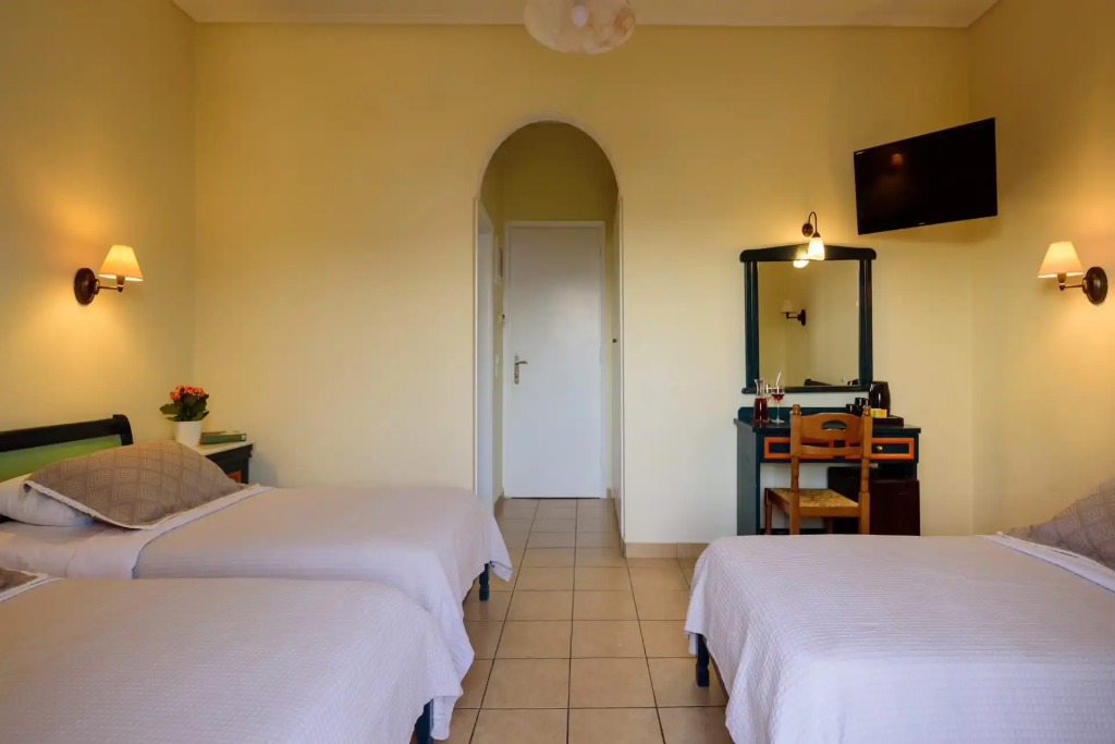 Недавно останавливался на неделю в сентябре. Мы обнаружили, что отель находится в очень хорошем месте к барам, ресторанам и пляжу. Останавливались в трехместном номере, который был очень чистым, но ванная комната была очень маленькой и устаревшей. У нас была проблема с кондиционером, так как двери на балкон не закрылись должным образом. Мы не сидели вокруг области бассейна, так как лежаки выглядели очень устаревшими и грязными. Завтрак был в порядке, но когда занят было трудно добраться до чашек, тарелок и т.д. Это можно было бы лучше организовать. Если бы у вас была комната со стороны дороги, я бы предположил, что это было бы очень шумно, так как это оживленная дорога с большим количеством междугородних автобусов вниз. В общем, хорошее пребывание и хороший небольшой отель просто нужно несколько вещей обновить. Санторини - прекрасное место!